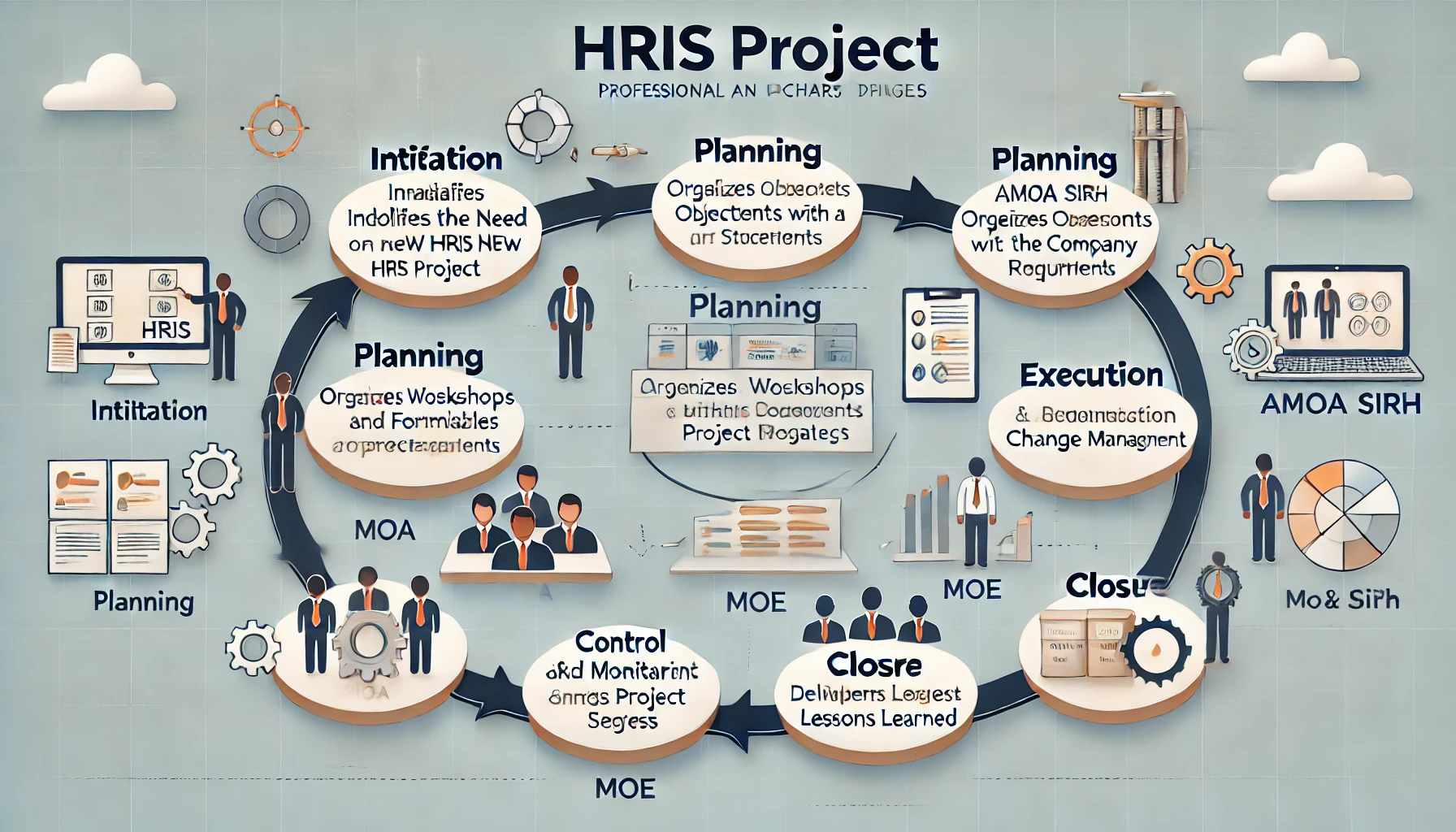 rong>Maîtrise d'Ouvrage (MOA) : Le commanditaire du projet, généralement la Direction des Ressources Humaines dans le cas d'un SIRH. La MOA définit les besoins, les objectifs stratégiques, et s'assure que le projet répond aux attentes de l'organisation.Les Notions Clés : MOA, AMOA, MOE et AMOE